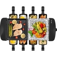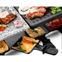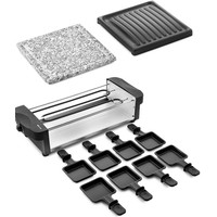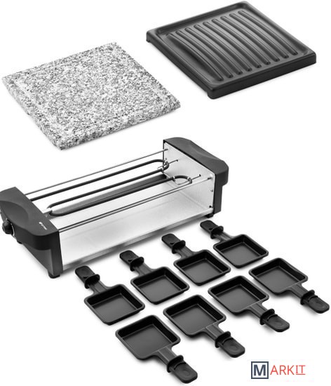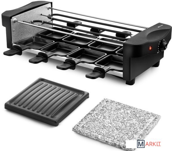 Комплектация Раклетница - 1 штКаменная плита - 1 штПанель с антипригарным покрытием - 1 штПорционные сковородки с антипригарным покрытием — 8 шт.Руководство по эксплуатации - 1 штГарантийный талон - 1 шт