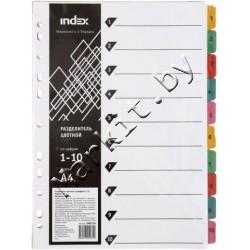 Разделители для регистраторов картонные Index, 10 л., индексы по цифрам (1-10) Код: 32577