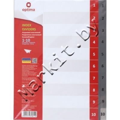 Разделители для регистраторов пластиковые Optima, 10 л., индексы по цифрам (1-10) Код: 32611