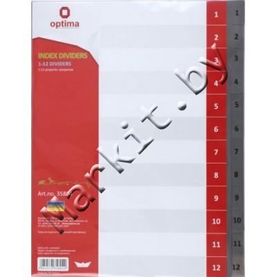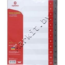 Разделители для регистраторов пластиковые Optima, 12 л., индексы по цифрам (1-12) Код: 32613