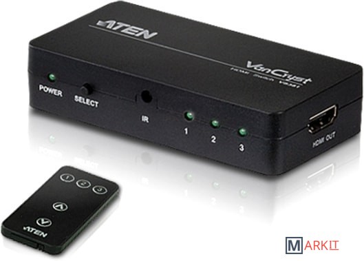 3-портовый HDMI-переключатель VS381 позволяет быстро подключить один из 3 источников видеосигнала к вашему монитору посредством интерфейса HDMI. Данное устройство удобно использовать для переключения между цифровыми устройствами, такими как DVD-плееры, спутниковые ресиверы и цифровые видеокамеры. Вы можете выбрать нужный источник входного сигнала с помощью пульта дистанционного управления или кнопок, расположенных на передней панели переключателя..