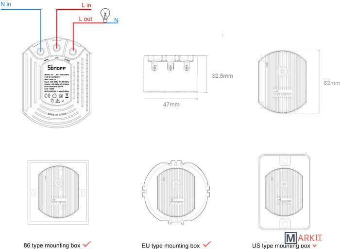 | Комплектация | Sonoff D1Sonoff RM433 R2 |