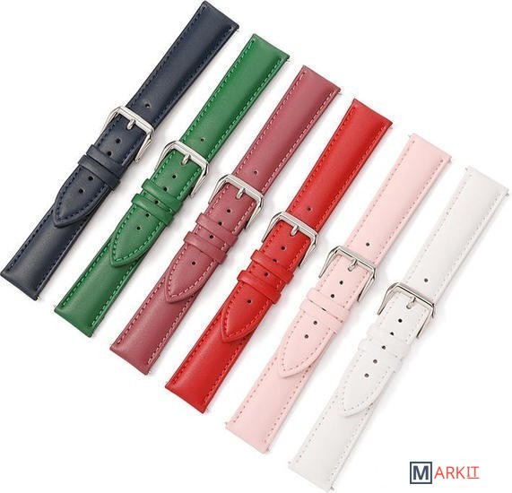 Элегантный кожаный ремешок прямой формы. Изготовлен из натуральной кожи, по краю прошит крашеной нитью, металическая пряжка серебристого цвета. Отлично смотрится на любой руке с любыми часами, в том числе и с классическими.