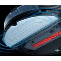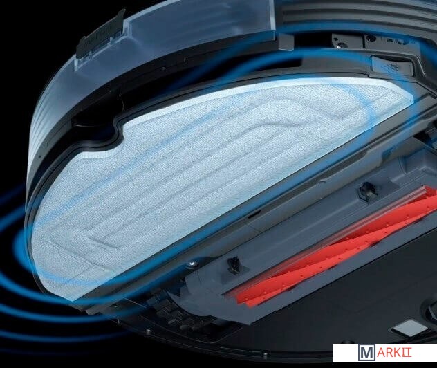 Новое конструктивное решение позволяет роботу-пылесосу поднимать салфетку при заезде на ковры, чтобы робот мог одновременно пылесосить и мыть пол, при этом не мочить ковры.Благодаря ультразвуковому приводу моющая площадка с салфеткой вибрирует.