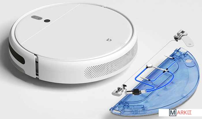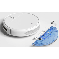 Робот пылесос, зарядное устройство, кисть с лезвием, кабель питания, резервуар для воды, тряпка для влажной уборки, боковая щетка. |
