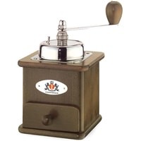 Качественная кофемолка из бука со стальной ручкой цвет: морилкаРазмер: 12,5 х 12 х 20 см.Емкость контейнера для зерен : 50 г