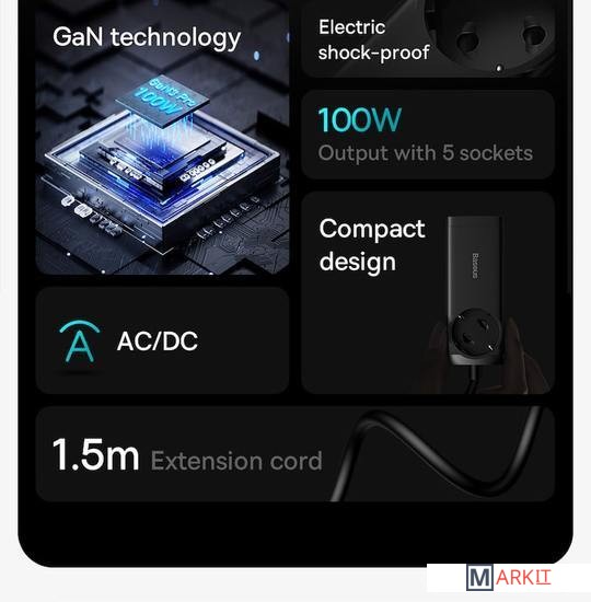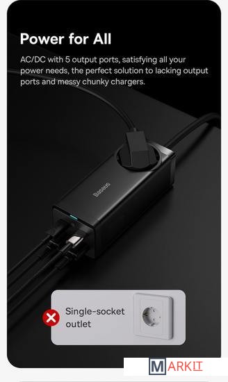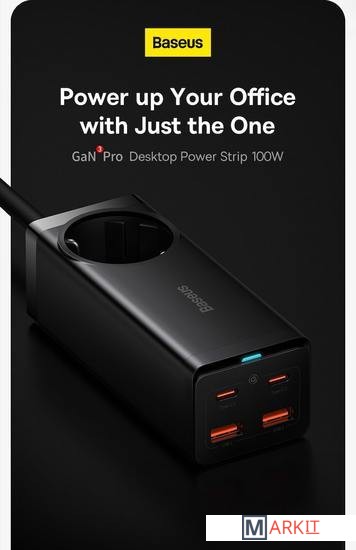 Markit » Зарядные устройства » Сетевое зарядное Baseus GaN3 Pro Desktop Powerstrip AC+2U+2C 100W PSZM000401