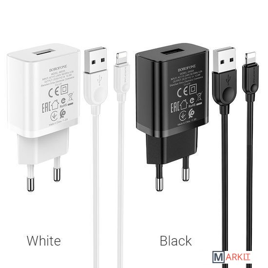 Markit » Зарядные устройства » Сетевое зарядное Borofone BA52A Lightning (белый)