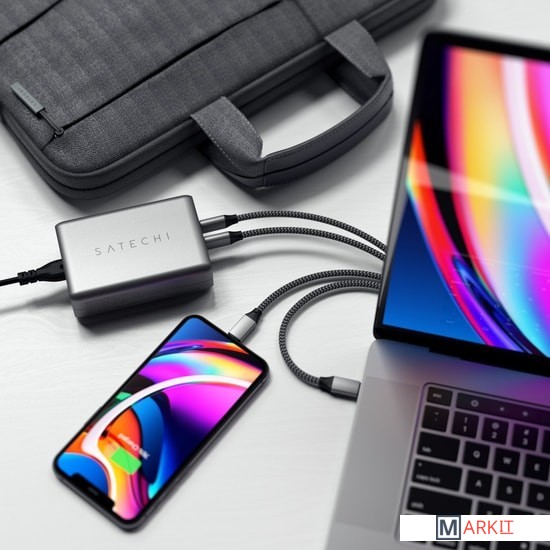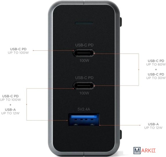 Markit » Зарядные устройства » Сетевое зарядное Satechi 100W Type-C PD Compact GAN Charger (американская вилка)