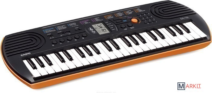 Модели SA-76 и SA-77 с 44 клавишами предлагают всем начинающим уникальные музыкальные возможности. 100 тембров, 50 стилей, встроенные композиции для обучения, новейший звуковой процессор с серьезной для таких синтезаторов 8-ми нотной полифонией, а также ЖК дисплей, помогающий с первых шагов разобраться в 2-х строчной нотной грамоте – все это делает инструмент отличным помощником для начинающего музыканта. Также в обеих моделях – SA-76 и SA-77 есть отдельная, вынесенная на корпус кнопка быстрого переключения между звуками фортепьяно и органа ( SA-76) и фортепьяно и язычкового органаоргана (SA-77). Обе модели имеют дизайн в стиле ретро, отличаясь между собой цветовой палитрой – SA-76 в ярко оранжевом , а SA-77 в серебристом корпусах. Но какой бы инструмент вы не выбрали, он идеально подойдет для вашего креативного ребенка.
