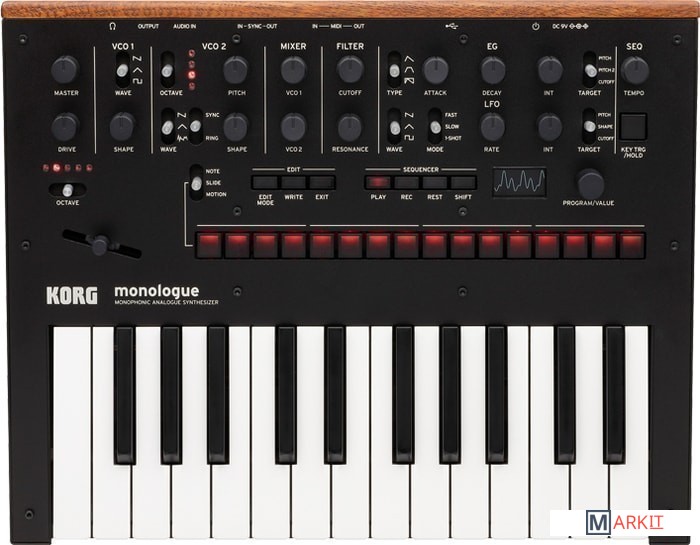 KORG Monologue – полностью программируемый монофонический синтезатор нового поколения. 25-клавишный синтезатор получил обновлённое звучание и ряд современных функций, позволивших сделать модель в полной мере универсальной, подходящий для музыкантов разного уровня мастерства, играющих в разных стилях. Возможно сохранение в памяти до 100 программ (80 предустановленных и 20 пользовательских). Высокопроизводительный 16-шаговый секвенсор, два осциллятора, широкий выбор фильтров, 32 установки тонкой настройки, 23 отдельных элемента управления на панели, работающий в режиме реального времени светодиодный осциллоскоп и многие другие полезные функции делают синтезатор KORG Monologue действительно многофункциональным устройством.