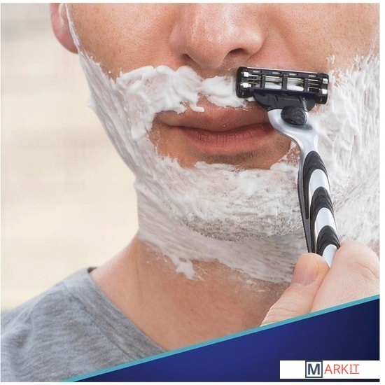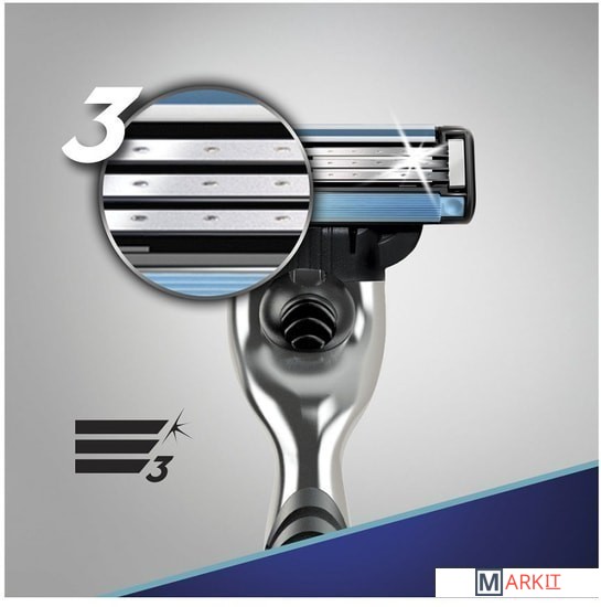 Кассеты Gillette Mach3 - это бритвенная система, оснащенная тремя лезвиями с покрытием DLC и усовершенствованной полоской-индикатором, которая обладает одновременно смазывающим эффектом и сигнализатором о смене картриджа для достижения оптимального эффекта.Три лезвия размещены на разных уровнях, что обеспечивает максимально чистое бритье всего одним движением и снижает тем самым раздражение, ведь необходимости брить снова становится меньше.