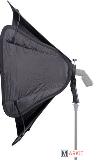 Falcon Eyes EB-95 Octa - быстроскладной софтбокс диаметром 95 см с кронштейном для накамерных вспышек. Фотографы-стробисты по достоинству оценят конструкцию входящего в комплект кронштейна, соответствуя принципу "все-в-одном", кронштейн является универсальным крепежным устройством, совместим с любой накамерной вспышкой и позволяет устанавливать насадки Bowens. Крепление Bowens обеспечивает совместимость с большим разнообразием светомодифицирующих аксессуаров, например: рефлекторы, портретные тарелки, софтбоксы, конусы и т. д. На кронштейне находится отверстие для установки зонтика и удобная рукоятка для регулировки направления освещения. Быстрый и надежный монтаж вспышки, не требуется использование липучек Велкро, нет нагрузки на "горячий башмак", резиновые вставки на зажиме препятствуют появлению царапин на корпусе вспышки.