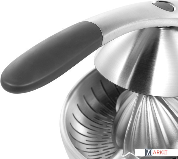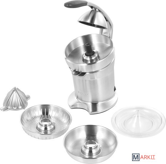 Эффективная система отжимаКомбинация свойств механического пресса и электрического привода позволяет выжимать сок без особых усилий.Литой металлический конусКонструкция конуса предназначена для получения сока из всех видов цитрусовых, а также плодов граната. Его размер и форма способствуют эффективному извлечению сока.Надёжность и стильДизайн, отмеченный международной премией RedDot Design Award, гармонично дополнит современный интерьер кухни.