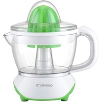 Цитрусовая соковыжималка Starwind SJ 1221 станет надежным помощником в вашем жилом доме или квартире. Вспомогательный кухонный инвентарь позволяет буквально за мгновение сделать вкусный и полезный сок для всех членов семьи. Изделие выполнено в привлекательном дизайне, здесь сочетаются между собой белый и зеленый цвета. Мощность соковыжималки составляет порядка 30 Ватт, а объем прозрачного резервуара для сока равен 0,7 литра. Изготовлено изделие на основе качественного пластика, оно имеет интуитивно понятное управление, с которым быстро разберется даже неопытная хозяйка.