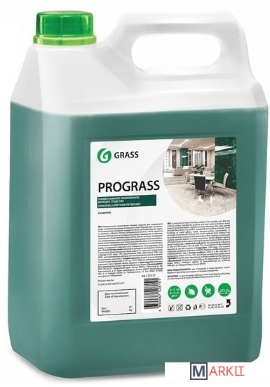 Средство для мытья полов GRASS Prograss 5 кг (125337)универсальное низкопенное концентрированное моющее средство для ежедневного ухода за любыми моющимися поверхностями. Используется в отелях, бизнес-центрах, гипермаркетах, на объектах социальной и общественной сферы, в коммунальном хозяйстве и домах. Подходит для синтетических и виниловых покрытий, поверхностей из линолеума, дерева, паркета, ламината, асфальта, бетона, облицовочной плитки, стекла, гранита и мрамора. Благодаря умеренному пенообразованию может применяться не только для ручной мойки, но и в поломоечных машинах. Не требует смывания, не оставляет разводов, не разрушает защитный слой поверхности. Не раздражает кожу рук.Состав: ≥30% очищенная вода;Способ применения:1. Ежедневная уборка: концентрат разводят в пропорции 1:150 - 1:50 или 5-20 мл/л.2. Генеральная уборка: концентрат разбавляется в соотношении 1:35 - 1:15 или 30-60 мл/л. Концентрация раствора зависит от характера загрязнения.