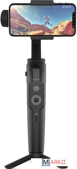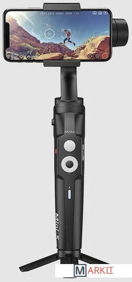 Трехосевой стабилизатор для смартфона. Его главной особенностью является складываемый дизайн, что делает этот подвес компактным и более легким в хранении, чем устройства конкурентов. Он умеет работать как с iPhone, так и с Android-смартфонами. Ширина смартфона должна лежать в пределах от 58 до 88 мм.