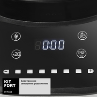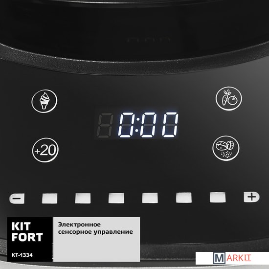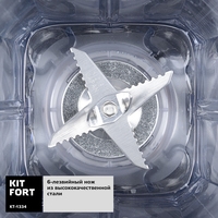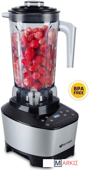 Высокоскоростной блендер Kitfort КТ-1334 с электронным управлением предназначен для приготовления супов-пюре, соусов, молочных коктейлей и мороженого, смешивания фруктовых и фитнес-напитков, дробления орехов и льда. В модели есть автоматические функции, а также импульсный режим. Блендер оснащён вместительной чашей с мерной шкалой объёмом 2 литра, в крышке которой есть отверстие, закрываемое колпачком, для добавления ингредиентов непосредственно во время работы. Управление прибором состоит из сенсорных кнопок с пиктограммами для выбора режимов и настроек.