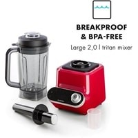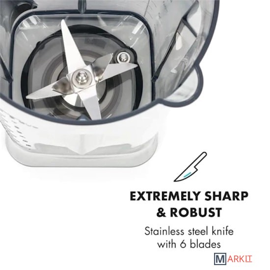 Датчик температуры и дисплей / точное время.Сенсорный дисплей, практичная мешалка, легко чистится.32000 об / мин.4 программы.Функция нагрева: содержимое нагревается за счет скорости вращения миксера.Нож из нержавеющей стали с 6 лезвиями.4 резиновые ножки для устойчивости.Резиновая крышка гарантирует, что даже когда блендер работает на полной скорости, содержимое контейнера остается на месте. Мотор профессионального миксера адаптирован к профессиональным условиям работы и благодаря защите от перегрева никогда не нагревается даже при интенсивном использовании.
