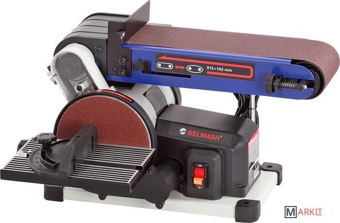 Ленточно-дисковый шлифовальный станок BDG 100/152L один из самых компактных в линейке BELMASH.Может использоваться в столярной мастерской, в частном доме или на даче. Станок позволяет шлифовать поверхность плоских заготовок с помощью ленточного узла и выравнивать углы и другие выпуклые поверхности при помощи диска.Небольшие габариты и вес станка обеспечивают легкую транспортировку и хранение.Корпус станка составной, основание из литого алюминия, имеются 2 патрубка для подключения систем аспирации. Широкое основание с противоскользящими накладками обеспечивает устойчивость на поверхности и снижает вибрации. Благодаря отверстиям есть возможность крепления к верстаку. Выключатель имеет специальный ключ.Ленточный блок поворотный, в зависимости от задач можно установить угол наклона от 0 до 90 град. Для удобства имеется рычаг быстрого натяжения и ослабления шлифовальной ленты.Абразивные материалы стандартные: лента – 915×102 мм, диск – Ø150 мм.На дисковый шлифовальный узел установлен алюминиевый рабочий стол с П-образным пазом для углового упора. Угол наклона стола от 0 до 45 град.Рабочий стол съемный, в зависимости от потребности его можно переставить на ленточный шлифовальный узел, установленный в вертикальном положении.
