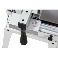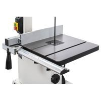 - Две скорости движения пильной ленты- Роликовые направляющие пильного полотна- Регулировка наклона пильного стола- Регулировка высоты распиловки вращением рукоятки- Рабочий стол из чугунного литья- Регулируемый параллельный упор с эксцентриковым зажимом- Двухпозиционный регулируемый параллельный упор- Подвижный угловой упор с направляющей вдоль Т-образного паза- Светодиодная подсветка рабочей области- Комплект опорных ног для напольной установкиJWBS-10S – напольная ленточная пила с трехопорными роликовыми направляющими, чугунным рабочим столом и двумя скоростями, предназначенная для любительской эксплуатации. Ее рабочие параметры позволяют «распускать» довольно крупные заготовки с высотой до 152 мм, предусмотрен наклон стола для выполнения скошенных резов.Переустановив ремень, можно уменьшить скорость движения полотна с оптимальных для неплотной древесины 800 м/мин до 400 м/мин, что позволяет избежать прижогов заготовок из твердых пород.Станок оборудован регулируемым двухпозиционным параллельным упором. Он имеет две рабочие поверхности: высокую для перпендикулярных столу резов и толстых деталей и низкую для наклонного пиления и для плоских заготовок. Упор перемещается вдоль направляющего профиля с миллиметровой шкалой; для удобства позиционирования по ней, на корпусе сделан «целик», состоящий из увеличительного стекла с риской. Также в комплект входит скользящий угловой упор с направляющей вдоль Т-образного паза.Базовая конструкция станка хорошо отработана, она используется давно при производстве многих схожих моделей и, в случае Jet JWBS-10S, имеет ряд дополнительных эксклюзивных улучшений. Хорошо продуманы и удобно реализованы некоторые «мелочи», вроде светодиодной подсветки или «ступенчатого» патрубка аспирации, позволяющего без всяких переделок подсоединить шланг любого из трех диаметров (50, 75 или 100 мм).