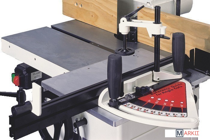 Комплект поставки Шпиндель диаметром 30 ммЦанговые зажимы 8 и 12 ммФрезерный упорВерхний и боковой прижимы заготовкиУгловой упорУпор для фрезерования закругленных кромок с прозрачным ограждением
