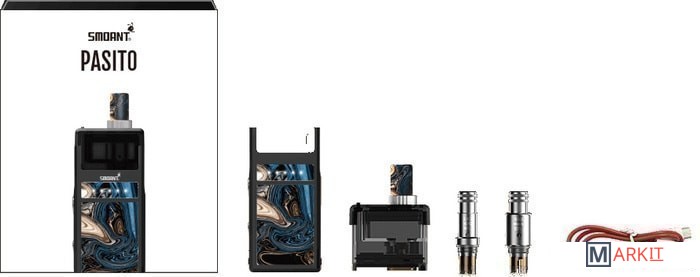 1 x Pasito mod1 x Pasito cartridge1 x MTL 1.4Ω Ni-80 coil1 x DTL 0.6Ω mesh coil1 x Type-C charging cable1 x Coil warning card1 x Certificate card1 x Warranty card1 x User manual