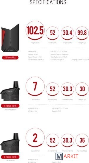 Markit » Электронные парогенераторы » Стартовый набор SmokTech X-Force (2 мл, красный)