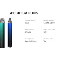 | Объем бака (картриджа) | 1.2 мл |