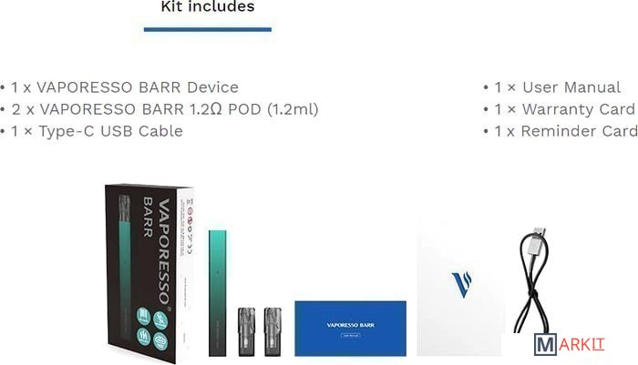 Markit » Электронные парогенераторы » Стартовый набор Vaporesso Barr Pod (серебристый)