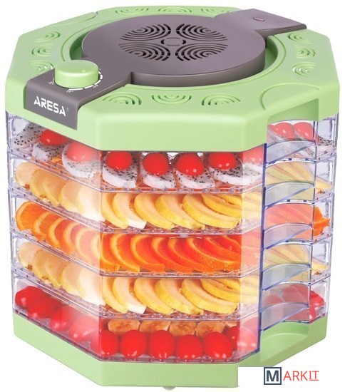 Сушилка для овощей и фруктов ARESA AR-2601 - прибор который соответствует всем сертификационным нормам. Сушилка для овощей и фруктов AR-2601 прошла контроль в лаборатории при Министерстве Здравоохранения Республики Беларусь, благодаря этому в приборе используются качественные комплектующие, которые позволяют добиться оптимальных условий не только для быстрой сушки продуктов, но и для максимального сохранения питательных веществ и витаминов в сухофруктах. Наш прибор можно длительно использовать, так как системы безопасности, которыми обладает прибор не позволят ему работать неправильно и перегреться. Мощность устройства 240 Вт. Встроенный конвекционный вентилятор с высокопроизводительным двигателем постоянного тока в 5 Вт поможет сократить время равномерной сушки овощей и фруктов. Корпус сушилки AR-2601 изготовлен из высококачественного термостойкого пластика, он не выделяет вредных веществ в продукты. Устройство оснащено 5 прозрачными съемными секциями для сушки. Сушилка оснащена возможностью регулировки температуру от 35 до 70 градусов, с помощью чего Вы сможете настроить необходимую температуры под любой продукт, сохранив при этом все его полезные свойства. ARESA – белорусский бренд бытовой техники. Наша техника проходит сертификацию на территории Республики Беларусь в едином центре ГОССТАНДАРТА. Кроме сертификатов таможенного союза, полученных на территории Республики Беларусь, техника ARESA соответствует всем нормам сертификации Европейского Союза и поставляется на его территорию. Приобретая нашу технику, вы заботитесь о здоровье и безопасности вас и ваших близких.