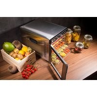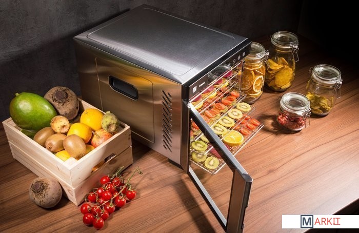 Горизонтальная сушилка для пищевых продуктов из нержавеющей стали с дверцей, таймером, 6 сушильными лотками и 6 мелкими ситами идеально равномерно сушит фрукты, овощи и другие ингредиенты. Автоматическое отключение даШум 52 дБЗона сушки 6039 см2В дополнение вы получаете не только 6 основных сушильных пластин из нержавеющей стали, но и 6 вставок с мелкой сеткой . Вы можете использовать их для сушки мелких ингредиентов , таких как грибы или травы, или идеальных домашних мюслей.
