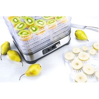 8 лотков без BPAЗащита от перегреваЭффективный и равномерный процесс сушкиТочная цифровая установка температуры и времениЛегко чистить и хранитьПодходит для консервирования фруктов, овощей, грибов, зелени, цветов, хлеба, мяса или рыбы.Температурный режим 35 – 70°CУстановка времени 1 – 48 часовКорпус из нержавеющей сталиМощность 400 ВтДлина шнура питания: 100 смНапряжение и частота: 220-240 В, 50/60 Гц