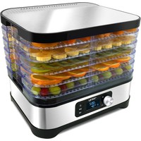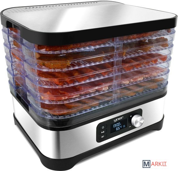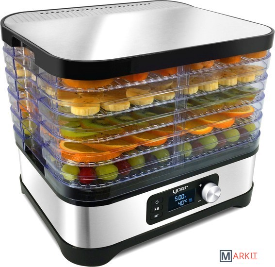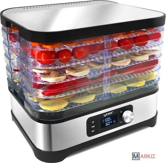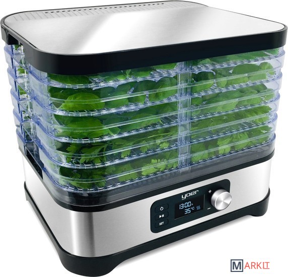 Мощность: 450 Вт, 5 прозрачных двусторонних подставок, регулируемая температура: 35-70°C, противоскользящее основание.Электронная панель управления со светодиодным дисплеем.Верхняя крышка из нержавеющей стали INOXПоверхность сушки: 4000 см²Полки можно мыть в посудомоечной машине.Корпус: матовая нержавеющая сталь INOX, полимерОдна дополнительная полка увеличивает емкость на 2,4 л.Защита от перегрева - автоматически отключает дегидратор, если есть риск перегрева и повреждения. Выдвинутое положение: высота прибора 27,1 см (расстояние 2,7 см) - использовать при обезвоживании.В сложенном виде: высота устройства 21,5 см (расстояние 1,5 см) - использовать для хранения24-часовой таймер - вы можете установить время, через которое устройство должно выключиться, чтобы вам не приходилось следить за его работой.8-ми ступенчатая регулировка температуры в диапазоне 35-70°C - позволяет вместить любой вид сушеных продуктов.Длина шнура питания: 93,5 смПольская вилка питания: 220-240 В 50/60 Гц