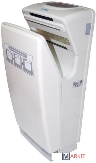 Данная сушилка для рук снабжена процессором управления, контрастным ЖК-дисплеем, несколькими инфракрасными датчиками. Высокоскоростной двигатель создает мощный двунаправленный поток воздуха, что позволяет высушить руки за 6-10 секунд. Внутри корпуса сушилки для рук находятся инфракрасный датчик, блок управления и электродвигатель. При поднесении рук к отверстию воздуховода, прибор включается и сушит руки исходящим потоком воздуха; отключение происходит автоматически. Блок управления сушилки для рук снабжен контроллером скорости вращения двигателя и предохранителем.