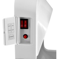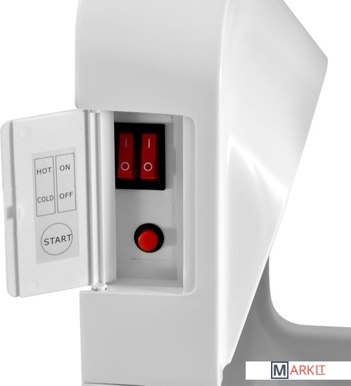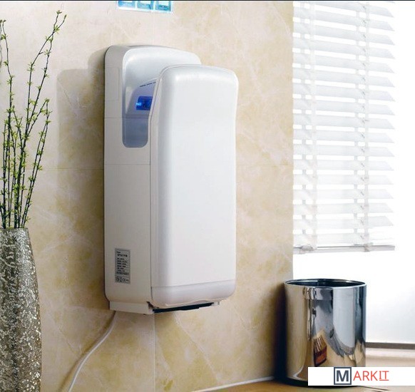 Данная модель рукосушителя снабжена переключателем холодный/горячий, что дает возможность использовать холодный воздух (при мощности устройства 900 Вт) или горячий воздух (при мощности устройства в 2000 Вт).Влага с рук собирается в каплесборнике объемом 0.5 л, который периодически необходимо опустошать (это не требует специальных навыков).