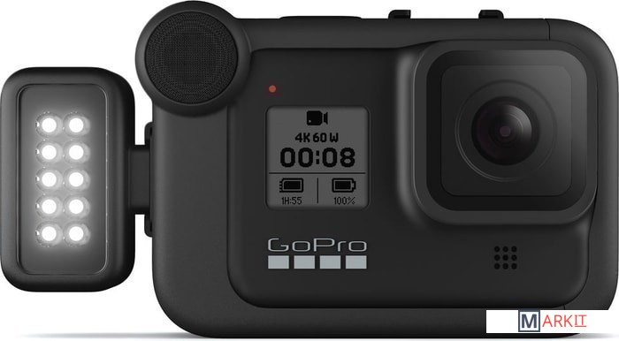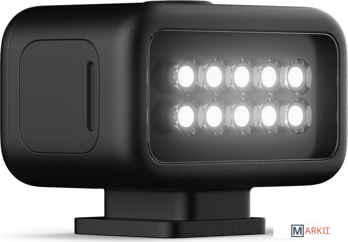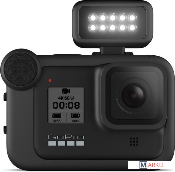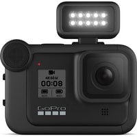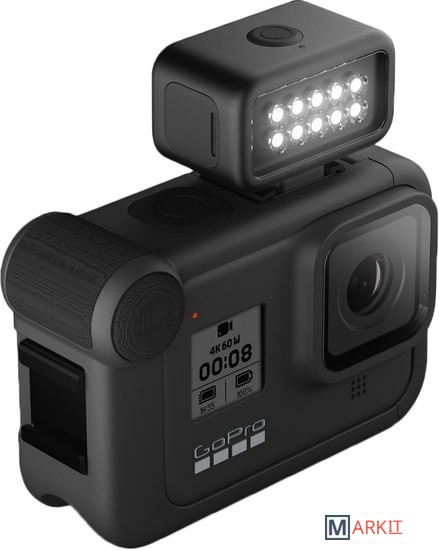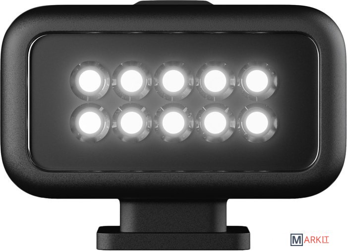 Возьмите компактный, но мощный модуль светодиодного освещения на свою следующую съемку. Световой модуль обеспечивает ровное и равномерное освещение объекта с широким охватом для создания материалов высочайшей четкости.Четыре уровня яркости — до 200 лм — для высокой детализацииПрочность и водонепроницаемость на глубине до 10 мВстроенный аккумулятор обеспечивает до шести часов работыБлагодаря компактной конструкции идеально подходит для использования как в качестве дополнения к камере HERO8 Black, так и в виде отдельного источника света с креплениями GoProПодключение к HERO8 Black и HERO9 Black с помощью медиамодуля (приобретается отдельно)Максимальная яркость до 30 секунд в режиме OverdriveРежим стробоскопа для подачи сигналов и высокой видимостиХарактеристики освещения:- Режим Overdrive: 200 лм, 200 лк на расстоянии 1 м- Уровень 3: 125 лм, 120 лк на расстоянии 1 м- Уровень 2: 60 лм- Уровень 1: 20 лмВремя работы: 1 ч на уровне 3, 2 ч на уровне 2, 6 ч на уровне 1Цветовая температура без рассеивателя: 5700 KCRI: 90+