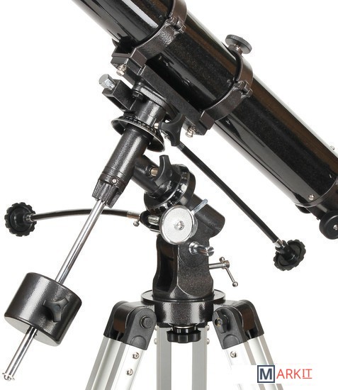 Классический 70-мм рефрактор с прекрасно просветленным стеклянным объективом укомплектован экваториальной монтировкой EQ1, снабженной микрометрическими винтами для плавного ведения телескопа по обеим осям и возможностью установки электродвигателя по часовой оси. Алюминиевая тренога монтировки имеет возможность регулировки высоты ног в диапазоне 710-1230 мм для удобства при наблюдениях.