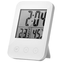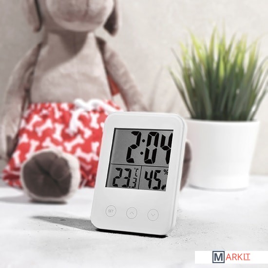 Современный комнатный термогигрометр с сенсорным управлением и большим монохромным цифровым ЖК-дисплеем: данные монитора могут быть четко прочитаны с различной яркостью и углом. На дисплее одновременно отображаются время, температура и влажность.Высокочувствительный встроенный усовершенствованный датчик температуры до 1 °C и влажности с точностью до 5 %.Функция будильника.Благодаря дизайну со встроенной подставкой гигрометр можно как поставить на стол, так и закрепить на стену.В качестве питания используются 2 батарейки ААА.