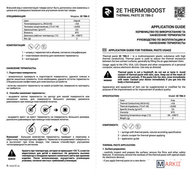 Markit » Системы охлаждения » Термопаста 2E Thermoboost Expert TB6-2 (2 г)