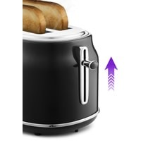 Тостер оснащён поворотным регулятором степени обжаривания и тремя кнопками со световыми индикаторами. Режим разогрева служит для разогрева уже готовых тостов, если они остыли. Режим разморозки позволяет приготовить тосты из замороженного хлеба.