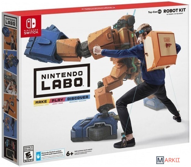 Для использования необходима консоль Nintendo Switch (продается отдельно).Из набора «Робот» можно собрать носимый костюм робота. Наденьте костюм, и вы сможете управлять роботом движениями своего тела. Устройте настоящий разгром в городе на экране телевизора, к которому подключена консоль Nintendo Switch. Вы сможете разрушать абсолютно всё: здания, машины и даже НЛО. Робот сможет трансформироваться в автомобиль и в самолет, открывая перед вами новые перспективы и игровые возможности.Nintendo Labo — Собирать. Играть. Узнавать Открывайте новые способы игры и воплощайте свои идеи в жизнь! Представьте, что можете превратить обычный лист картона практически во что угодно: мотоцикл, удочку, фортепиано... Затем добавьте консоль Nintendo Switch и вдохните жизнь в свое творение: побеждайте в гонках, ловите рыбу, музицируйте... Собирайте, играйте и изучайте вместе с Nintendo Labo. Разберитесь, как всё это работает, и, возможно, вы придумаете новые способы игры для каждого аксессуара Toy-Con. Собирать Собирайте аксессуары Toy-Con, следуя пошаговым инструкциям. Играть Добавьте консоль Nintendo Switch и играйте в игры, которые идут в комплекте. Узнавать Поймите принцип действия аксессуаров Toy-Con в процессе игры. Изменяйте по своему вкусу Раскрашивайте, добавляйте наклейки, изменяйте форму или создавайте новые детали. Возможности для креатива почти безграничны. Изобретайте Придумывайте новые игры для аксессуаров Toy-Con. Мастерите в гараже Toy-Con Соединяйте входные данные, например прикосновение к сенсорному экрану или резкое движение Joy-Con, с выводом данных, например воспроизведением звуков или вибрацией, чтобы создавать собственные аксессуары Toy-Con. Гараж Toy-Con входит во все наборы Nintendo Labo.