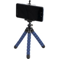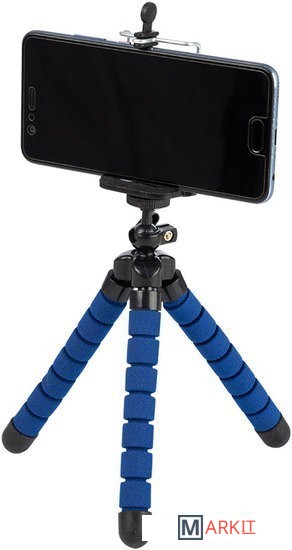 Трипод с гибкими ножками и держателем для телефона. Позволят закрепить телефон практически на любой поверхности: ветках деревьев, руле, заборе, или же просто поствить на стол.
