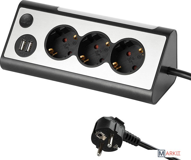 Markit » Стабилизаторы, сетевые фильтры, удлинители » Удлинитель Electraline 62512 (1.5 м, серебристый/черный)