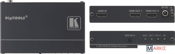 Kramer VM-2HXL - высококачественный усилитель-распределитель 1:2 для сигнала HDMI. Он выполняет перетактирование сигнала и компенсацию АЧХ кабеля, после чего выдает сигнал на два одинаковых выхода.