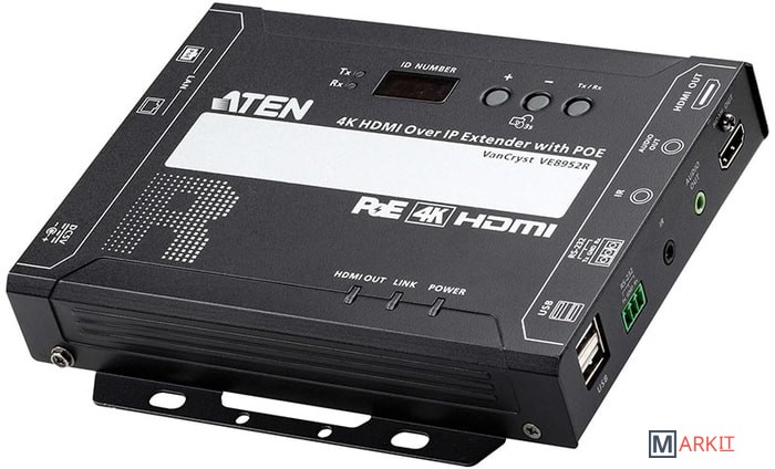 Приемник ATEN VE8952R 4K HDMI over IP с PoE обеспечивает передачу AV-сигналов 4K без визуальных потерь с низкой задержкой на большие расстояния через стандартную гигабитную сеть.