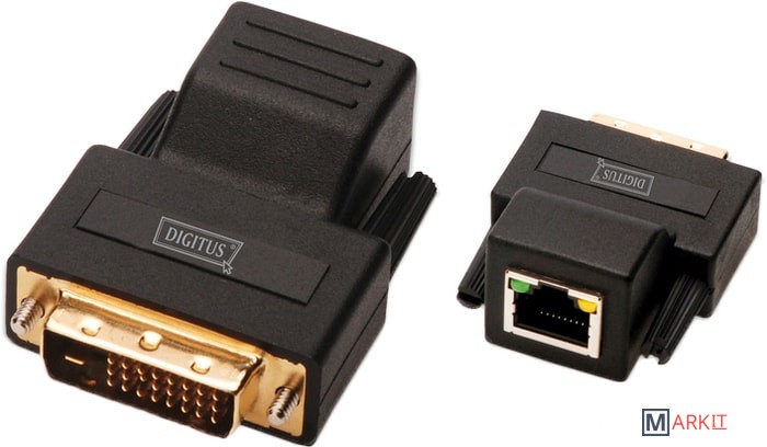 DVI удлинитель по CAT5 увеличивает дальность передачи DVI сигнала от вашего ПК на расстояние до 70 метров с помощью обычного кабеля Cat5. Возможное видео разрешение зависит от дальности передачи сигнала.