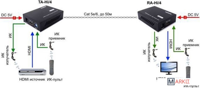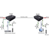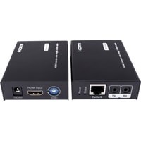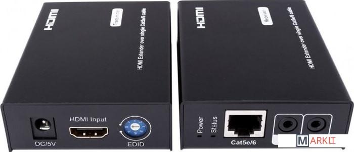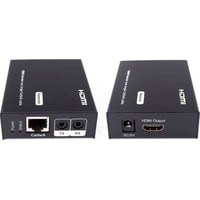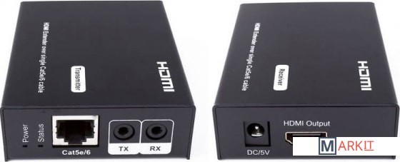 Комплект для передачи HDMI и ИК сигнала управления по одному кабелю витой пары CAT5e/6 до 50м. Разрешение до 1080p, 24бит(Deep Color). Поддержка 3D. Скорость передачи данных до 6,75Гбит/с. Расширенные настройки EDID. Передатчик: Вх. - HDMI(A)/TRS3,5мм(ИК)/Роз.2,1х5мм(DC5V). Вых. - RJ45/TRS3,5мм(ИК). Приёмник: Вх. - RJ45/TRS3,5мм(ИК)/Роз.2,1х5мм(DC5V). Вых. - HDMI(A)/TRS3,5мм(ИК). В комплекте БП DC5V(1А) - 2шт. Размеры каждого устройства (ШxВxГ): 65x24.1x85мм. Рабочая температура: -5…+35°С. Максимальное расстояние передачи - 50 метров.