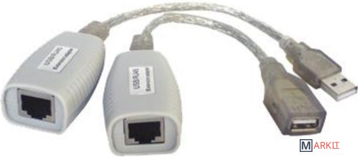 Удлинитель USB 1.1 интерфейса для клавиатуры и мыши по кабелю витой пары (CAT5/5e/6) до 100м, USB звуковые платы и т.д. до 70м. Cкорость передачи до 12Мбит/c. Комплект (приёмник + передатчик).Пластиковый корпус. Размеры каждого устройства (ШxВxГ): 32x22x54мм.