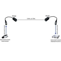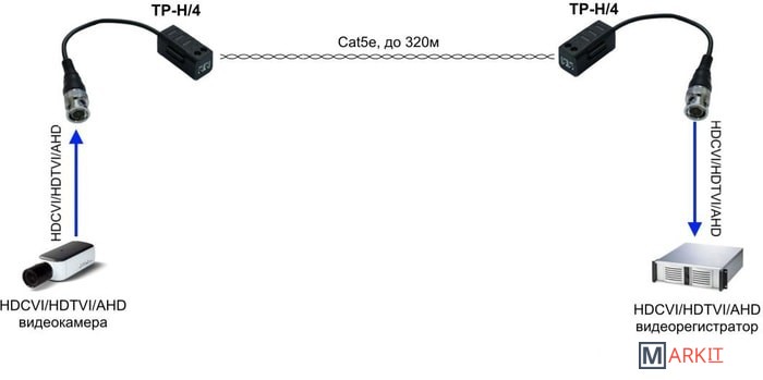 Комплект из двух пассивных приемопередатчиков предназначен для передачи видеосигнала HDCVI/HDTVI/AHD по витой паре.Максимальное расстояние передачи видеосигнала составляет 320м при разрешении 720р (AHD) и 250м при разрешении 1080р (AHD). Для разрешения 5 Mpix (AHD) максимальное расстояние передачи составляет 130м. Присутствует поддержка разрешений вплоть до 4К (8 Mpix) для HDCVI видеосигнала.TP-H/4 выполнен в пластиковом корпусе с винтовой клеммной колодкой для витой пары и разъемом BNC, закрепленном на гибком кабеле.